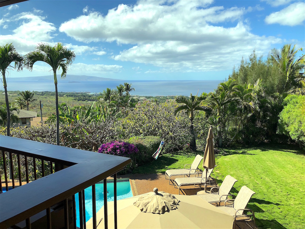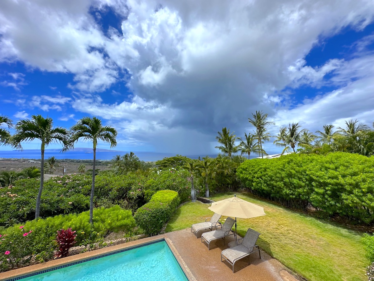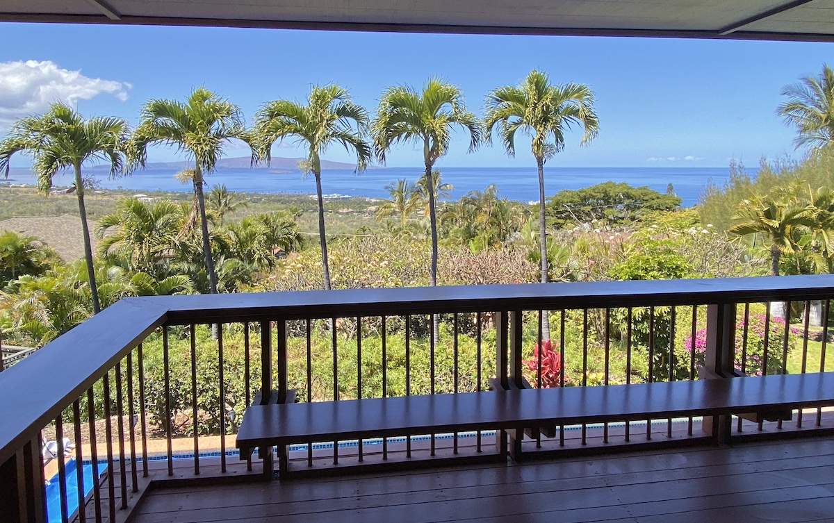 The ocean / islands southwest view is amazing and overlooks lush tropical vegetation and the South Shoreline - specifically The Four Seasons Resort Wailea, and beyond to Molokini and Lanai.